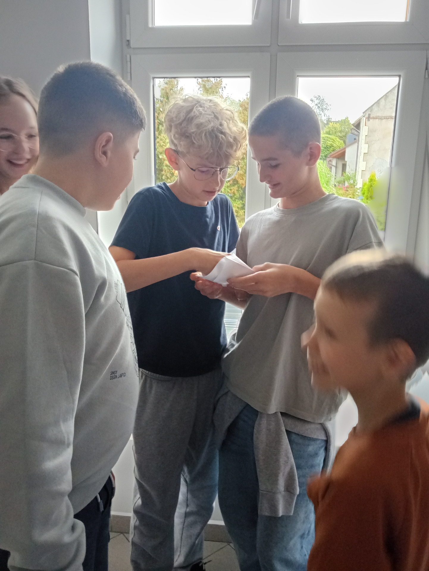Trzydziestego września chłopcy z klasy 7 wzięli udział w wyjątkowych podchodach po całej szkole, przygotowanych samodzielnie przez dziewczyny z ich klasy. Musieli rozwiązywać zagadki, wykonywać zadania i szukać kopert w różnych salach.