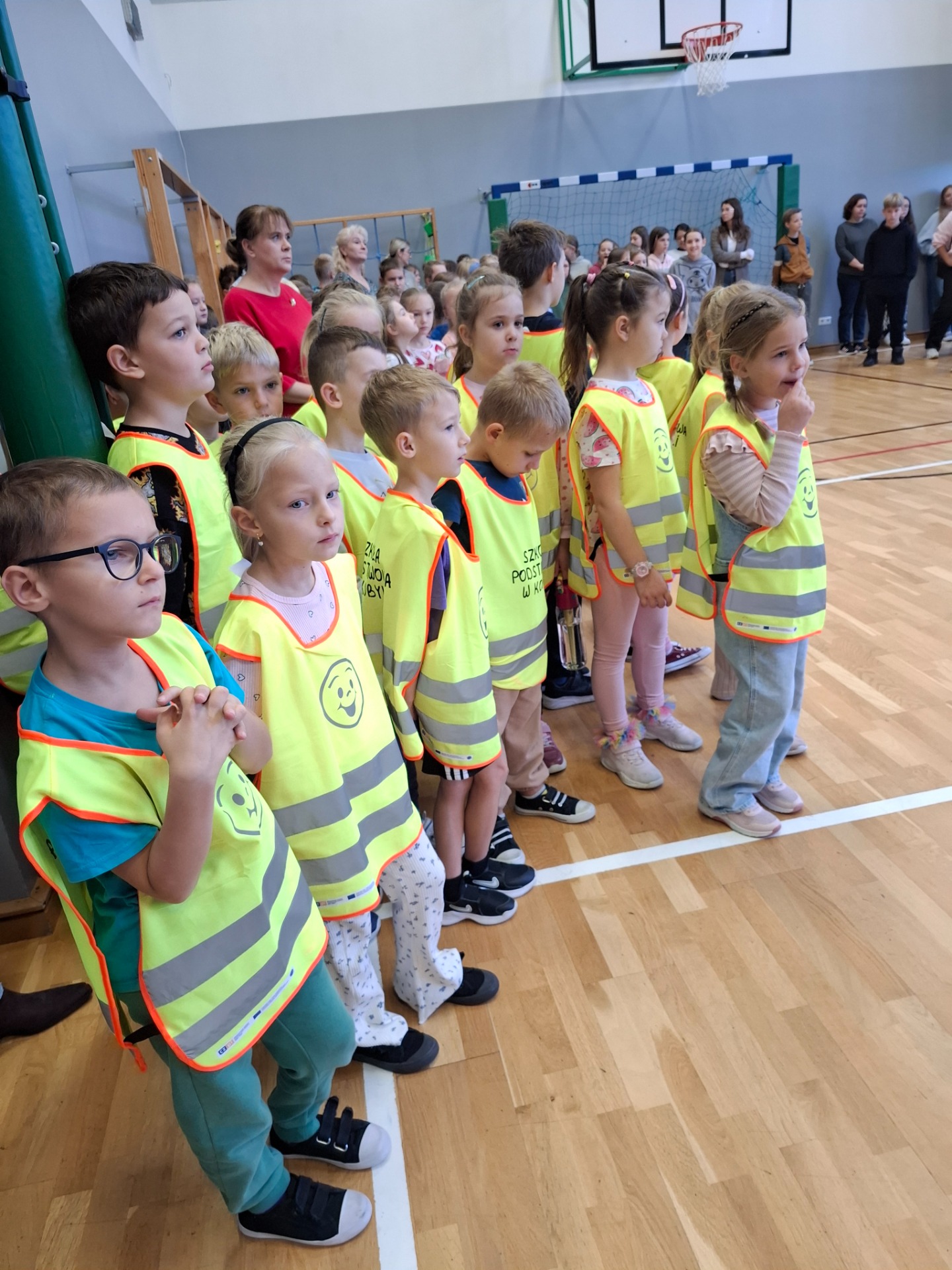 W dniu dzisiejszym uczniowie naszej szkoły zostali wyposażeni w kamizelki odblaskowe ( klasa I), oraz opaski odblaskowe na rękę ( klasy II-VIII). To kolejny etap realizacji założeń konkursu Odblaskowa Szkoła. Od poniedziałku wszyscy uczniowie zostali zobowiązani do zakładania elementów odblaskowych celem poprawy bezpieczeństwa w drodze do i z szkoły. Rusza konkurs, któy potrwa do połowy marca - uczniowie będą zbierali naklejki za sumienne zakładanie kamizelek i elementów odblaskowych i wymieniali je na punkty dodatnie i nagrody. Pani dyrektor przypomniała o zasadach bezpiecznego poruszania się po drodze pieszo, na rowerze i hulajnodze.