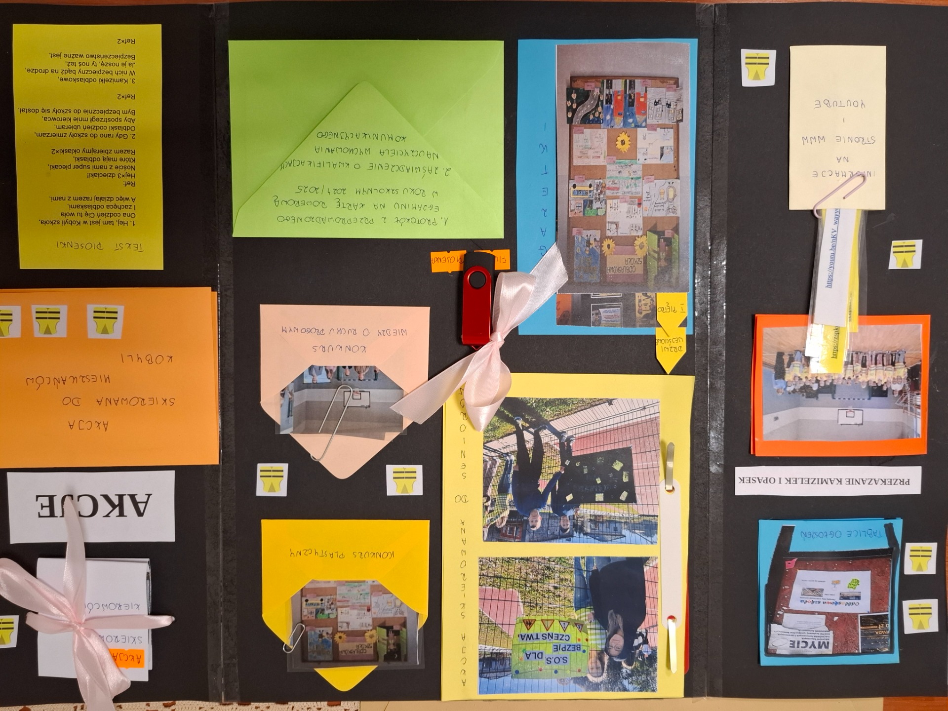 Na przełomie września i października nasza szkoła wzięła udział w Ogólnopolskiej Akcji "Odblaskowa Szkoła". Akcja pod patronatem Komendy Wojewódzkiej Policji ma na celu poprawę bezpieczeństwa obywateli. Uczniowie oraz nauczyciele zaangażowali się w szereg działań, które promowały noszenie elementów odblaskowych. Akcję rozpoczął poranek, na któym pani dyrektor wręczyła uczniom klasy I kamizelki odblaskowe, a pan sołtys podarował opaski odblaskowe pozostałym. W szkole pojawiły się gazetki ścienne zachęcające do noszenia elementów odblaskowych, odbyły się dwa konkursy : konkurs ze znajomości przepisów ruchu drogowego ( dla klas starszych) oraz konkurs plastyczny (dla klas młodszych). Uczniowie przygotowali ogłoszenia, plakaty, które zostały rozwied=szone w naszej miejscowości, młodsi demonstrowali prawidłowe przejście przez pasy, starsi promowali odblaski podczas spaceru z kijkami. Uczniowie klasy VII przygotowali również filmik i piosenkę, a wszystko po to, by było bezpieczniej. Jako podsumowani został przygotowany lapbook z wszystkimi działaniami podjętymi w ramach akcji, któy dzisiaj odesłaliśmy ze sprawozdaniem do Wydziału Ruchu Drogowego Komendy Wojewódzkiej Policji w Katowicach.