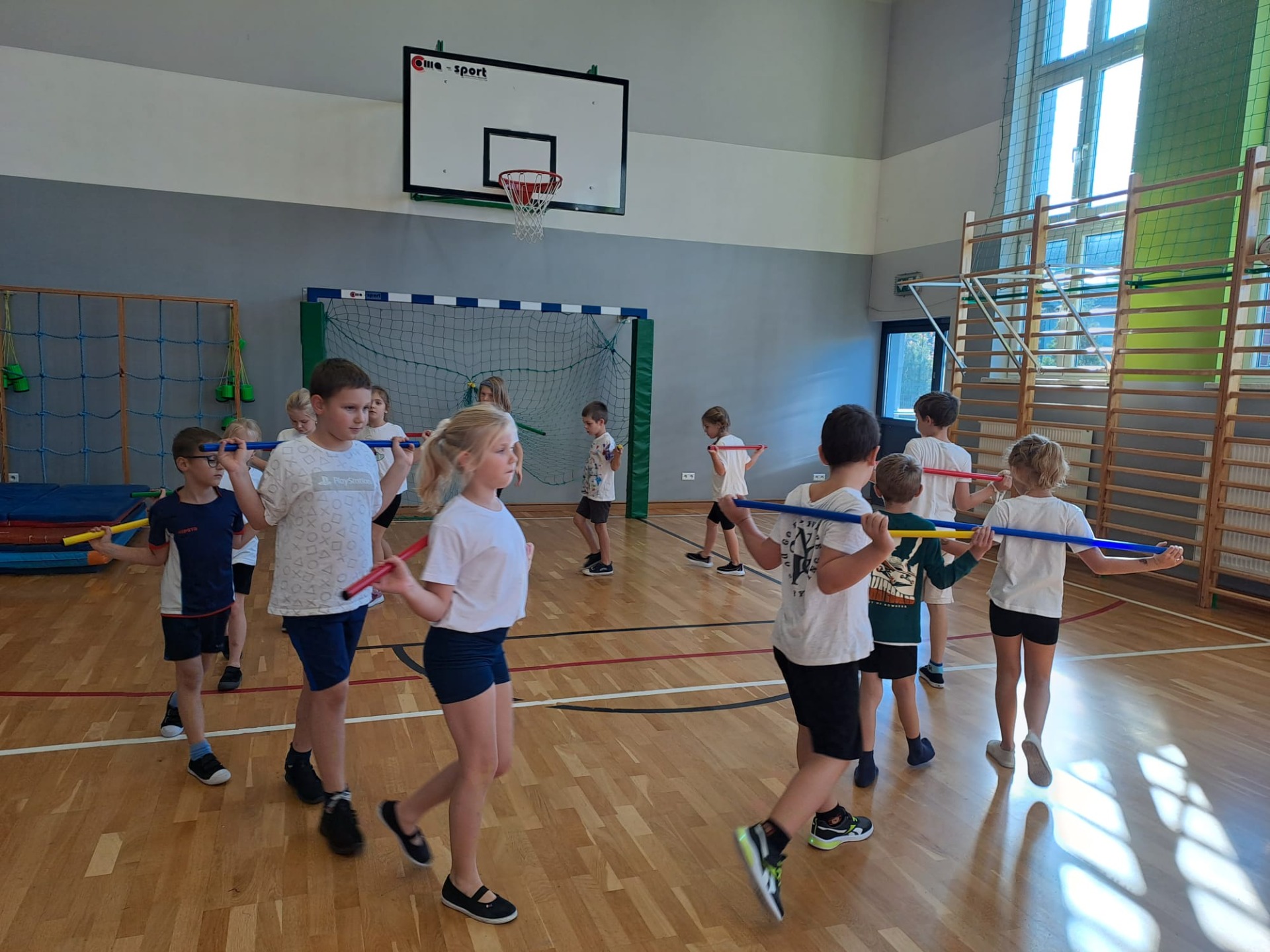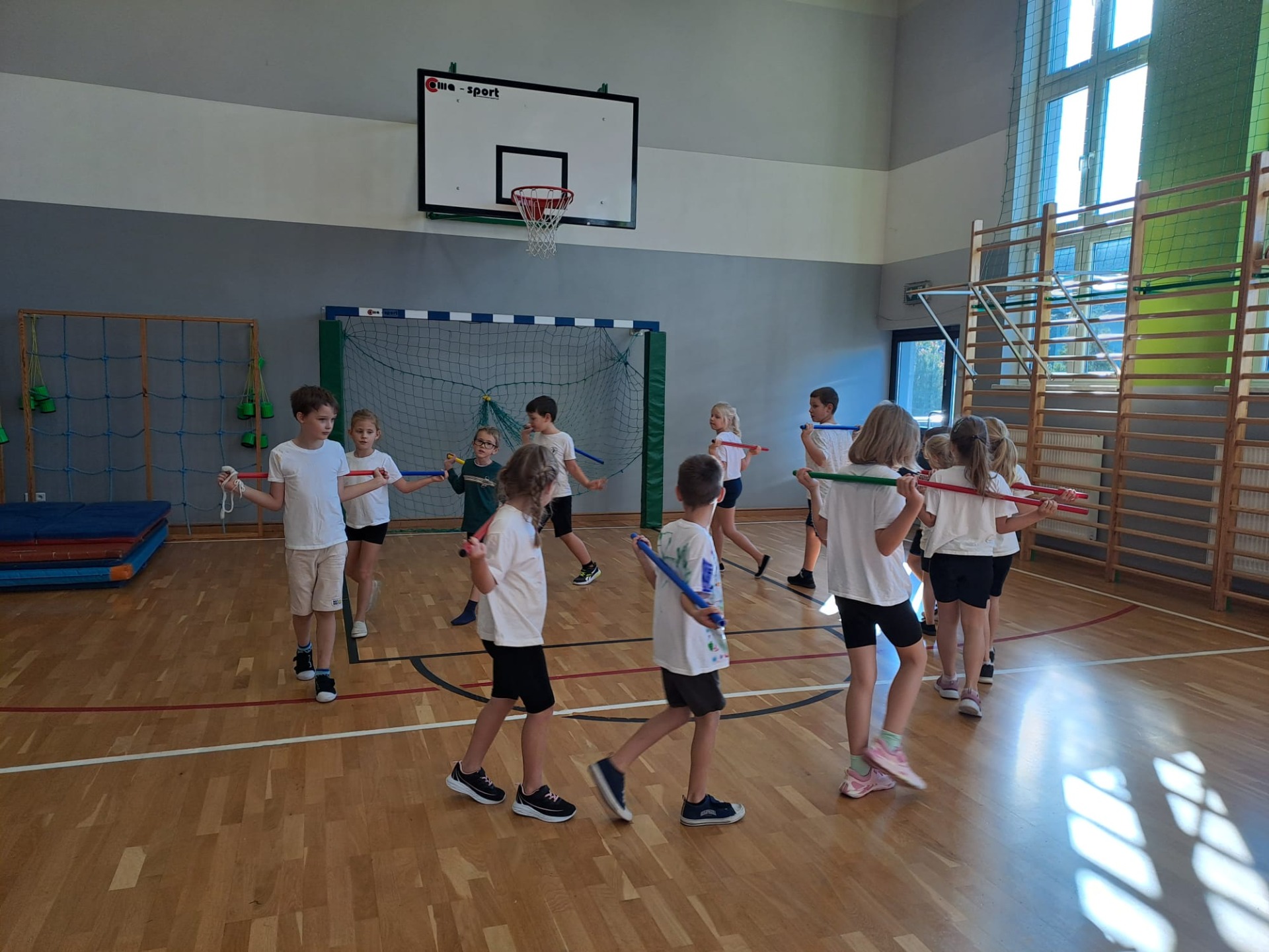 Raz-dwa-trzy 2025 to zajęcia sportowe realizowane w naszej szkole od września dla uczniów klas I-III. Bierze w nich udział 16 uczniów. Zajęcia te odbywają się dwa razy w tygodniu. Uczniowie chętnie biorą w nich udział. Ćwiczenia zawierają elementy gimnastyki korekcyjnej, które korygują wady postawy u dzieci, albo im zapobiegają. Przecież ruch to zdrowie!