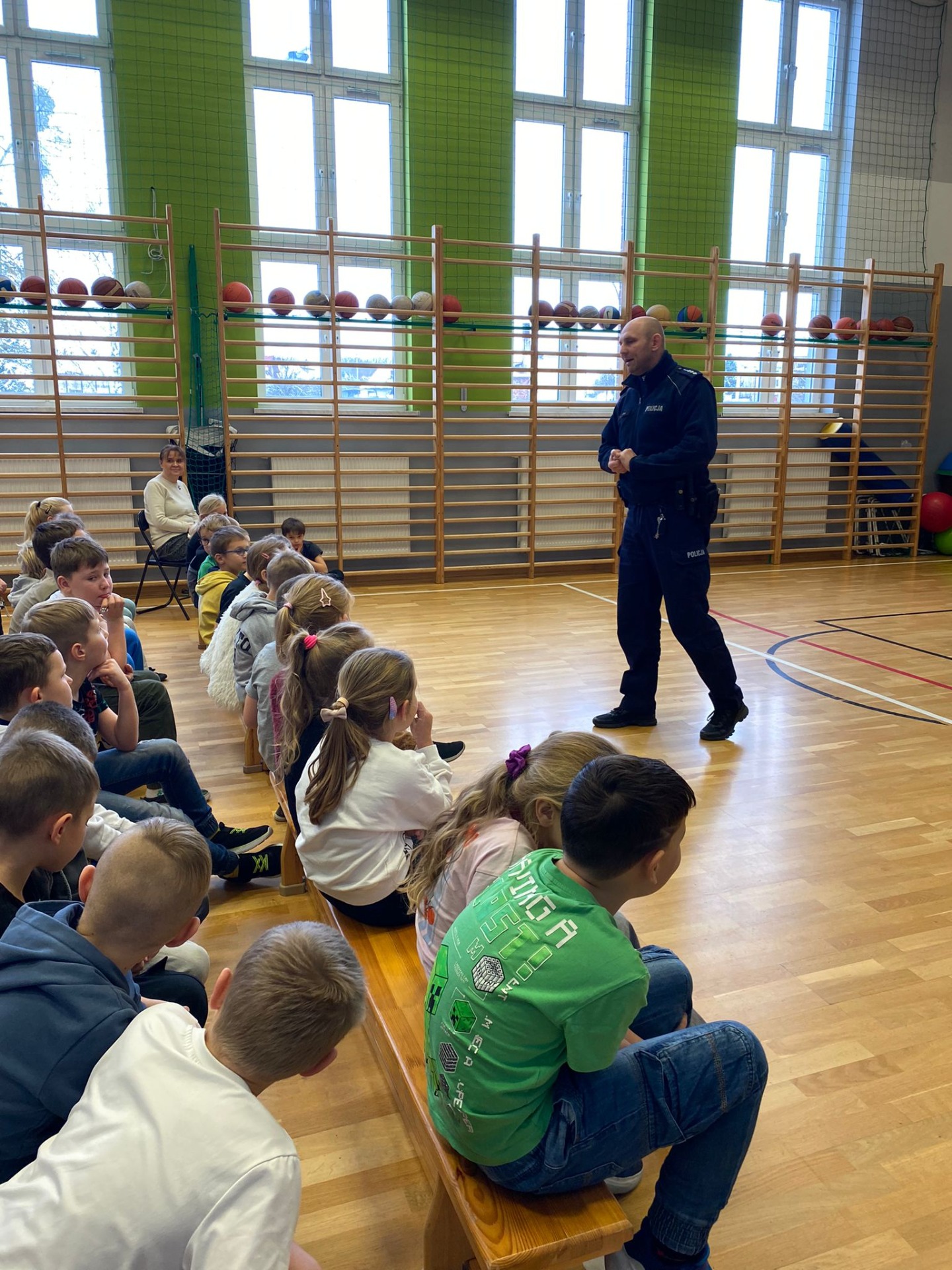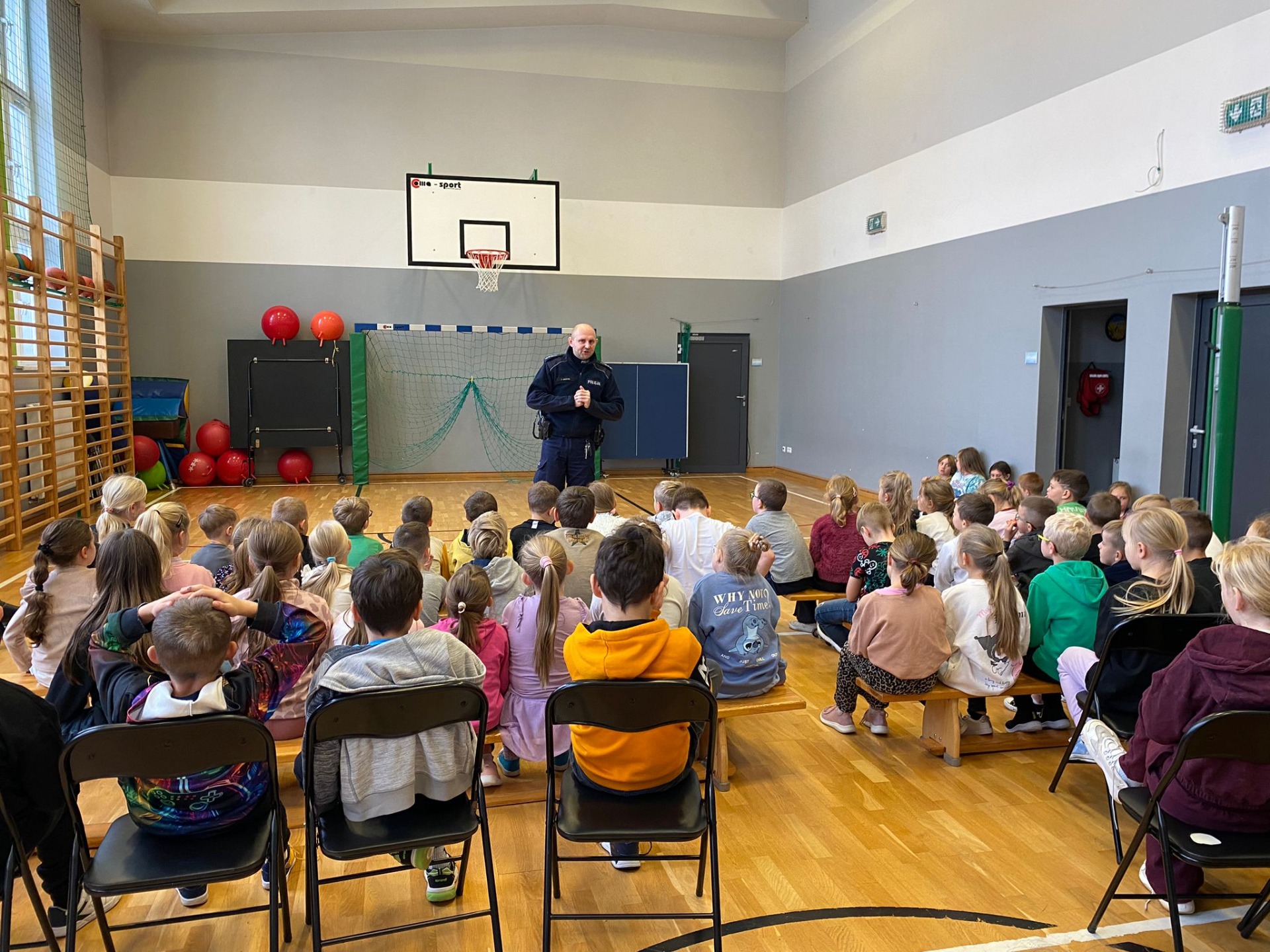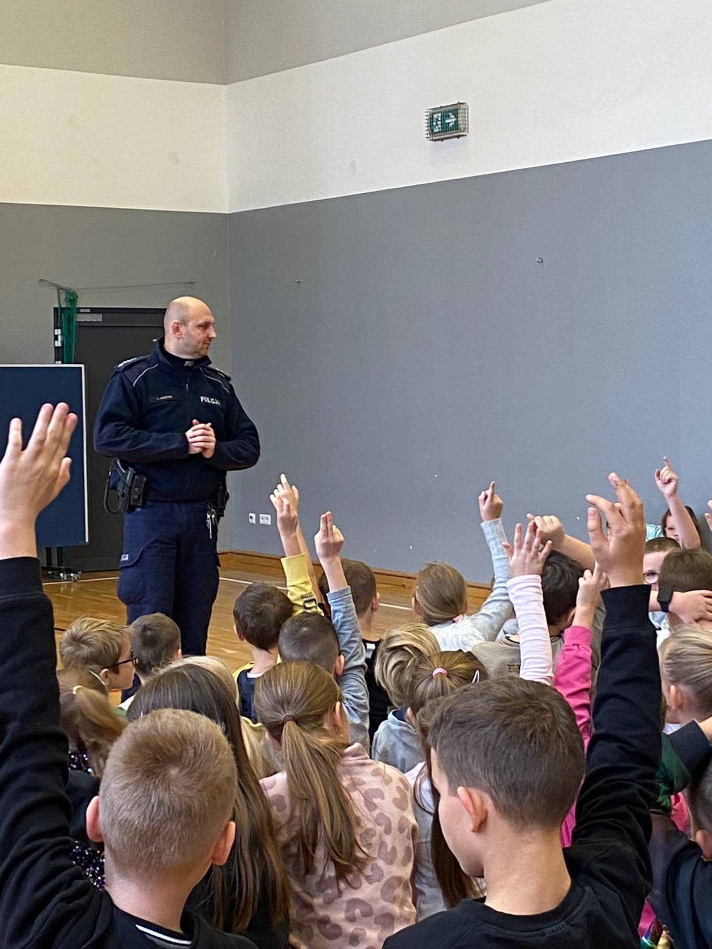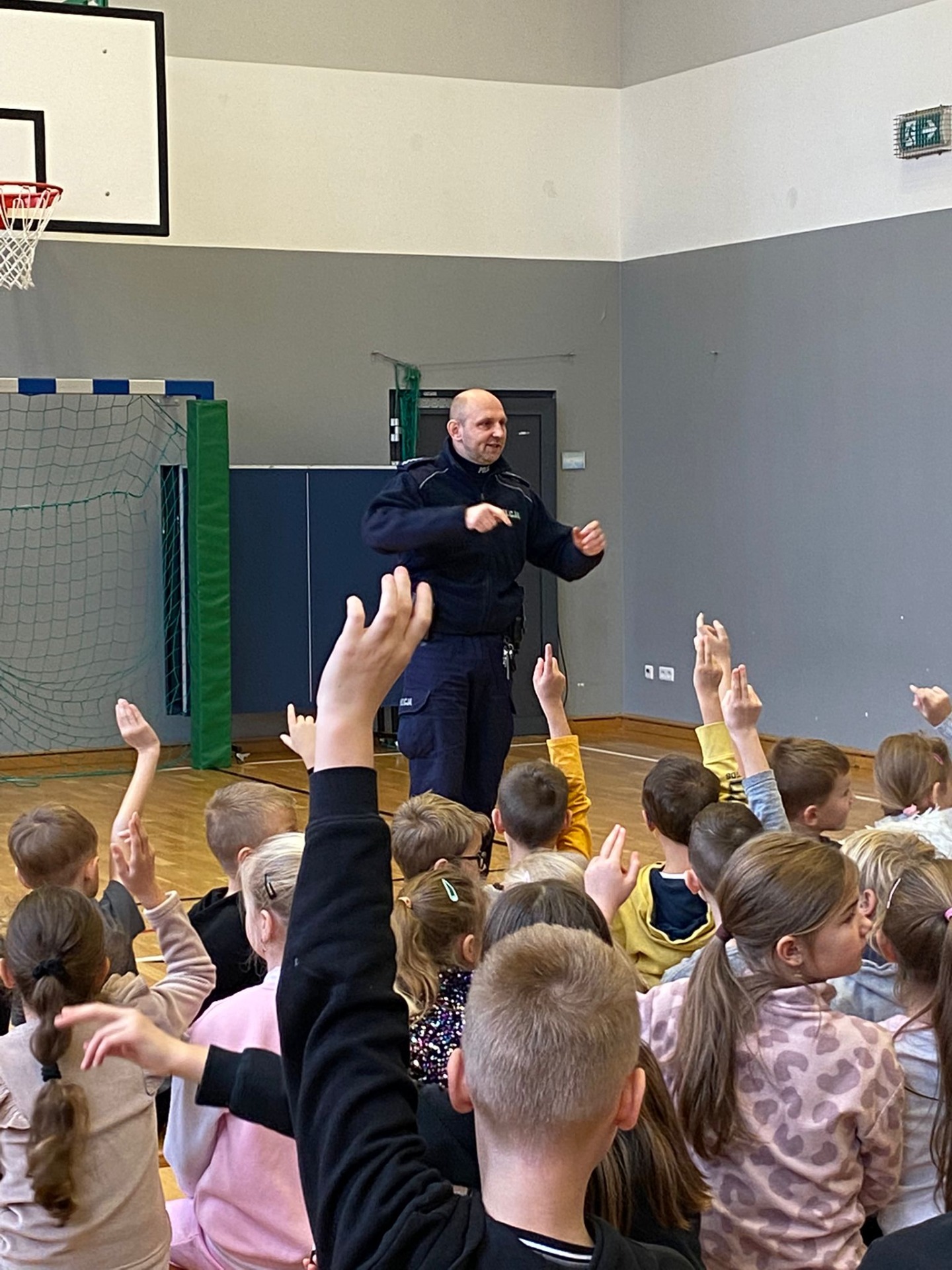 Po weekendzie już pracujemy pełną parą kontynuując w naszej szkole działania profilaktyczne, tym razem skierowane do młodszych uczniów klas 1–4. Z dziećmi spotkał się Kazimierz Kruczek nasz dzielnicowy, który w przystępny i dostosowany do wieku sposób opowiadał o zasadach bezpiecznego korzystania z internetu, unikania zagrożeń w sieci oraz właściwych reakcji w sytuacjach budzących niepokój.