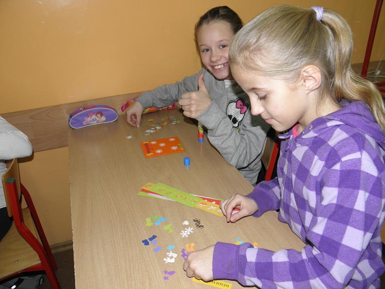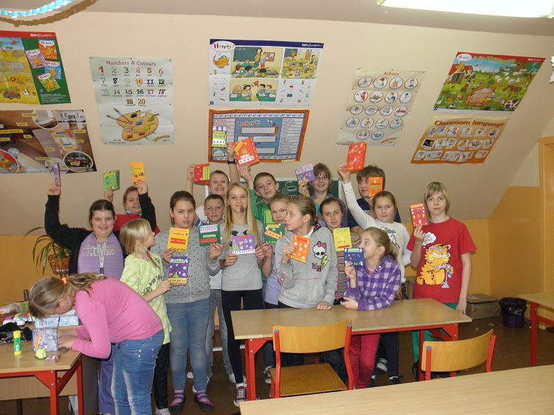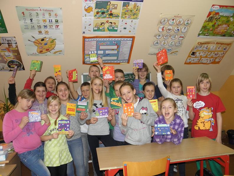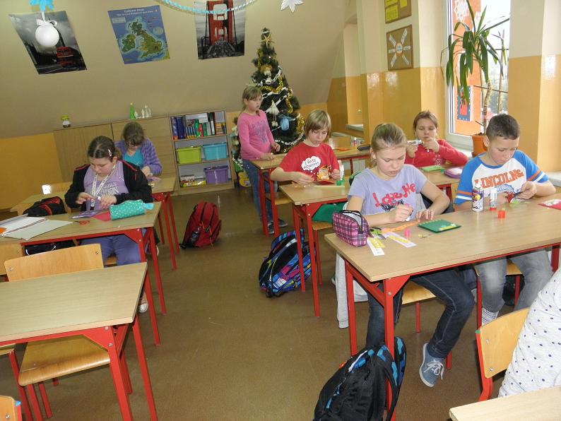 Uczniowie klasy V przyłączyli się do akcji pisania listów i robienia kartek dla chorych dzieci z „Marzycielskiej Poczty”. W związku ze zbliżającym się Bożym Narodzeniem postanowiono wykonać kartki świąteczne. Uczniowie z zapałem zabrali się do pracy uświadamiając sobie, że zrobienie czegoś dobrego dla innych wcale nie musi być trudne i może przynieść wiele radości i satysfakcji. Mamy nadzieję, że dla małych Marzycieli potrzebujących odrobiny otuchy w walce z chorobą będzie to miła niespodzianka, a przesyłka wywoła uśmiech na ich twarzach.