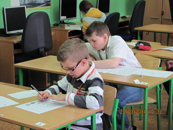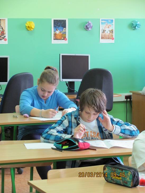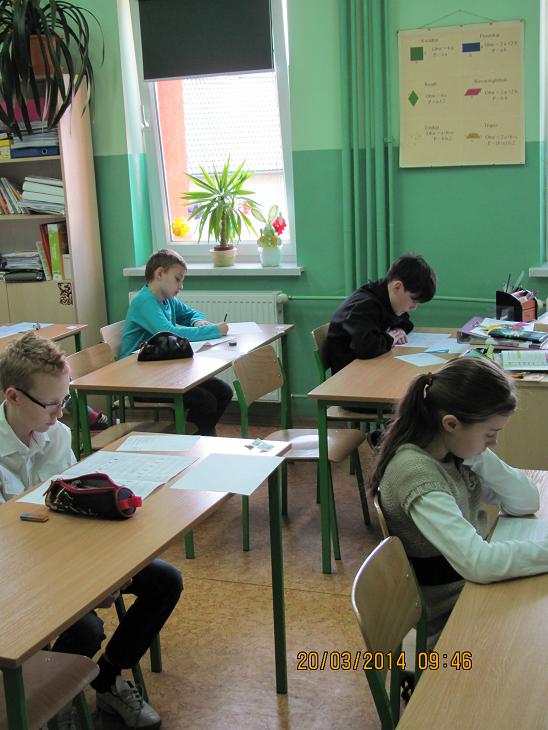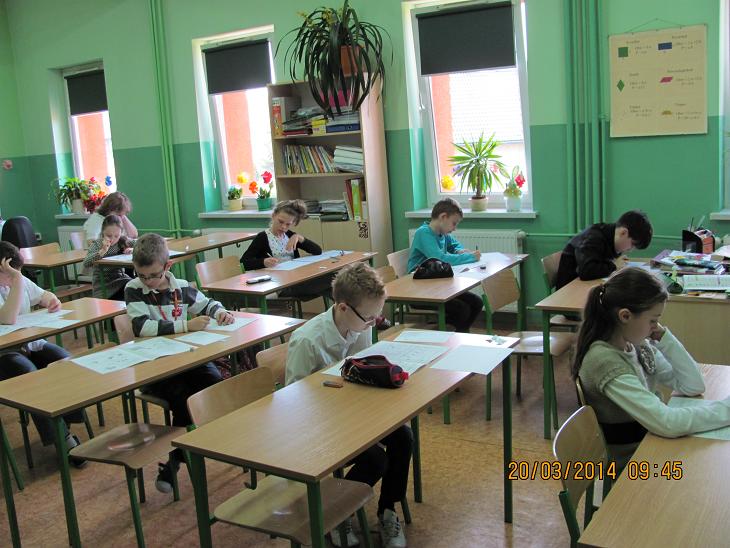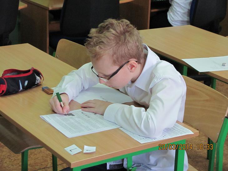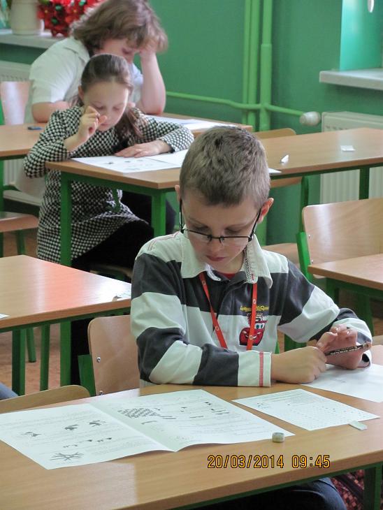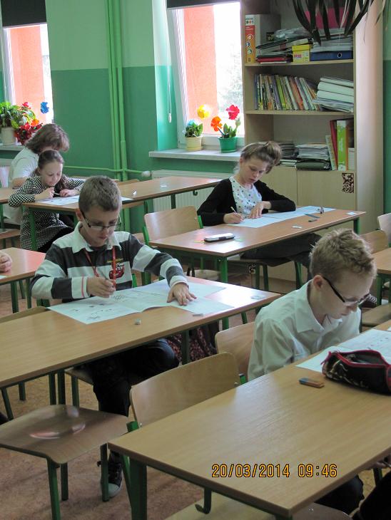 W czwartek 20 marca odbył się w naszej szkole Międzynarodowy Konkurs "Matematyczny Kangur". W konkursie wzięli udział uczniowie z klas II- VI (Martyna Nowak, Kinga Błaszczok, Karol Jendrzejczyk, Miłosz Knura, Krzysztof Krolik, Olaf Sichma, Julia Herok, Dawid Konopka, Mariusz Sitek, Martyna Stencel, Patrycja Kura, Dominika Kapuścik, Wiktoria Gawron, Julia Dąbrowska, Tomasz Frydrych). Uczniów biorących udział w konkursie łączy logiczne myślenie oraz chęć zmierzenia się z nietypowymi zadaniami matematycznymi. Konkurs dla szkoły podstawowej dzieli się na trzy kategorie: Żaczek dla uczniów z klasy II, Maluch dla uczniow z klasy III i IV oraz Benjamin dla uczniów z klasy V i VI. Wyniki konkursu będą znane w maju, życzymy naszym uczniom wysokiej punktacji.