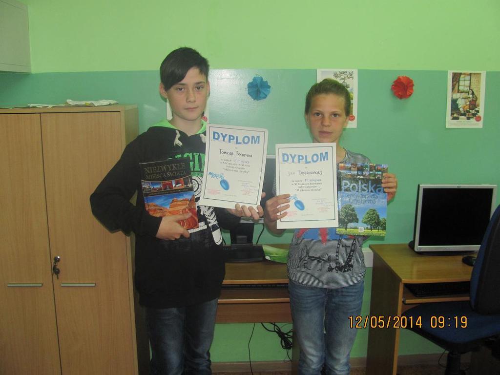 W czartek troje uczniów z klasy VI (Julia Dąbrowska, Tomasz Frydrych, Daniel Miklis) uczestniczyło w Gminnym Konkursie Informatycznym w Szkole Podstawowej w Rzuchowie. Zadaniem uczniów było utworzenie prezentacji multimedialnej na zadany temat. Temat prezentacji w tym roku był trudny, mianowicie "Powstanie Parlamentu Europejskiego". Uczniowie naszej szkoły świetnie sobie poradzili z zadaniem Julia Dąbrowska zdobyła drugie miejsce, a Tomek Frydrych miejsce pierwsze. Daniel Miklis również świetnie sobie poradził i godnie reprezentował naszą szkołę.